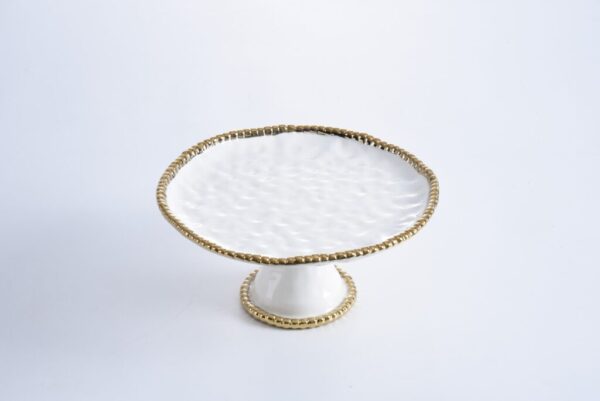 CAKE STAND WHITE W/GOLD