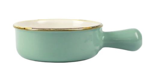 SMALL ROUND AQUA BAKER W/LARGE HANDLE