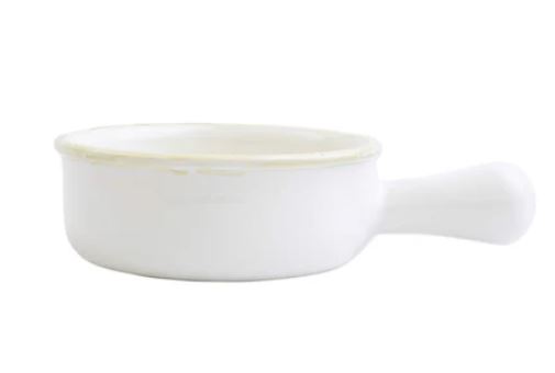SMALL ROUND WHITE BAKER W/LARGE HANDLE